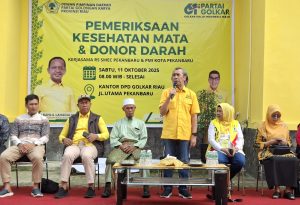 PEKANBARU (Khabarmetro.com)- Partai Golkar merayakan HUT ke-61, jatuh pada 20 Oktober 2025. Rangkaian kegiatan sempena HUT ini dimulai dengan aksi sosial periksa mata gratis dan donor darah.