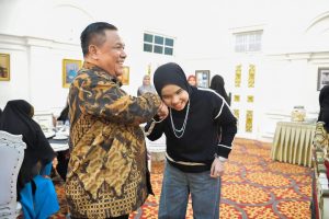 Artis pemenang America’s Got Talent 2024 Putri Ariani menyalami Pj. Gubernur Riau SF. Hariyanto.