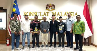 Ketua SPS Riau H Saidul Tombang (empat kiri) bersama rombongan dan Konsul Malaysia Mohammed Hoesni Shahiran (jas hitam). PEKANBARU (Khabarnetro.com)- Usai terpilih, Ketua Serikat Perusahaan Pers (SPS) Riau H Saidul Tombang melakukan kunjungan ke mitra. Setelah bertemu Gubernur Riau, dilanjutkan ke Konsulat Malaysia di Pekanbaru. Pertemuan ini berlangsung di ruang …