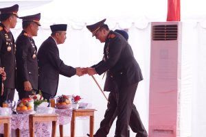 PEKANBARU (Khabarmetro.com) – Saat hadir pada upacara peringatan Hari Ulang Tahun (HUT) Bhayangkara ke-78 di halaman kantor Gubernur Riau, Kapolda Riau Irjen Pol Mohammad Iqbal menghampiri Gubernur Riau periode 2019-2023 Drs H Syamsuar, M.Si. Nampak keduanya bersalaman.
