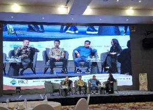 Diskusi Nasional Danantara di HUT ke-2 FPRMI. Tiga pembicara tampil menyampaikan materi.