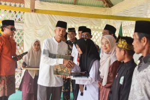 Acara dilanjutkan dengan penyerahan penghargaan kepada para santri terbaik, kemudian pemotongan tumpeng oleh Pimpinan Pesantren Sholawat Al Burdah BAA Khalish Abah Guru Ahmad Fadhli Inatullah.