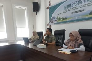 Kepala Bagian Mutu Layanan Kepesertaan BPJS Kesehatan Pekanbaru, Debi Mersah Putra (tengah) saat jumpa pers, Rabu (19/3).