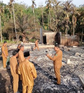 Camat Bantan Rafly Kurniawan bersama aparat desa turun langsung melihat kondisi rumah pasca kebakaran Camat Bantan didampingi Pj Kepala Desa Bantan Sari menyampaikan rasa duka cita yang mendalam atas musibah yang dialami pak Bunasir. Selasa, (30/09/2025).