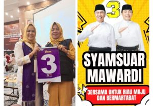 PEKANBARU (Khabarmetro.com) – Pasangan calon (Paslon) Nomor urut 3 Gubri Syamsuar- Mawardi (SUWAI) dan Cawako Ida-Kharisman (IDAMAN) bertemu di momen yang sama.