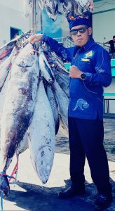 Saat ikan turun dengan crane, Presiden PRj. Haryono sempat pula abadikan momen bersama ikan-ikan besar yang diturunkan.