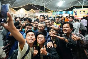 Suasana semakin heboh dan akrab. Usai turun dari panggung, Cagubri Syamsuar mulai dikerumuni millenial dan Gen Z. Seperti artis turun dari panggung, semua nampak ingin mendekat. Ada yang bersalaman, ada pula yang berteriak sambil melambaikan tangan.