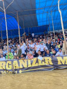 PANGEAN- Tim ekspedisi PWI se Riau yang melakukan kunjungan ke Kabupaten Kuantan Singingi dalam rangka Hari Pers Nasional (HPN) tingkat Provinsi Riau tahun 2024, Sabtu (8/6/2024) mendapat kesempatan langsung melihat jalannya perpacuan jalur Kecamatan Pangean di Tepian Rajo.